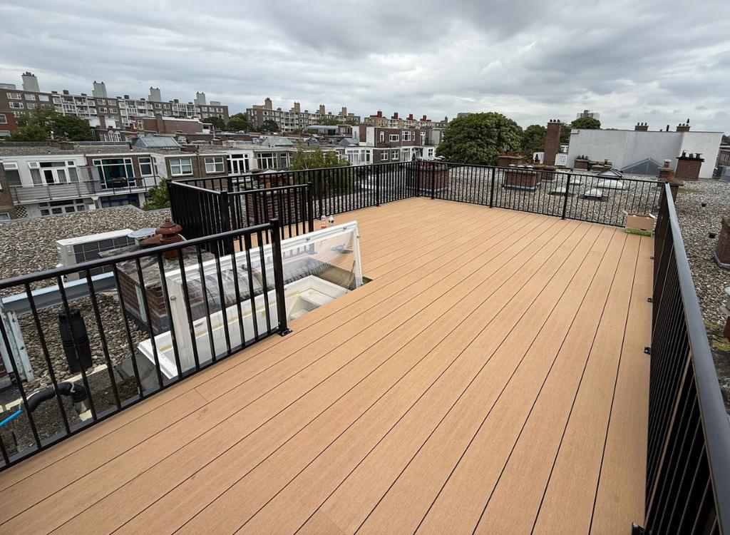 CT Hekwerk maakt gebruik van duurzame en zo goed als onderhoudsvrije materialen. De onderhoudstijd aan uw dakterras zal gering zijn, wat meer tijd vrijlaat om van uw dakterras te genieten. Dakterrasvloeren worden bij CT Hekwerk in verschillende materialen geleverd, waaronder: hardhout (FSC), rubber en of stenen tegels. Ook voor verlichting kan gezorgd worden, zodat u ook ’s avonds volop van uw dakterras kunt genieten. Verder kan bij de decoratie gedacht worden aan stoelen, (lounge)banken, beplanting, verlichting en tafels.